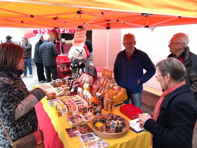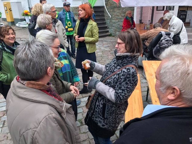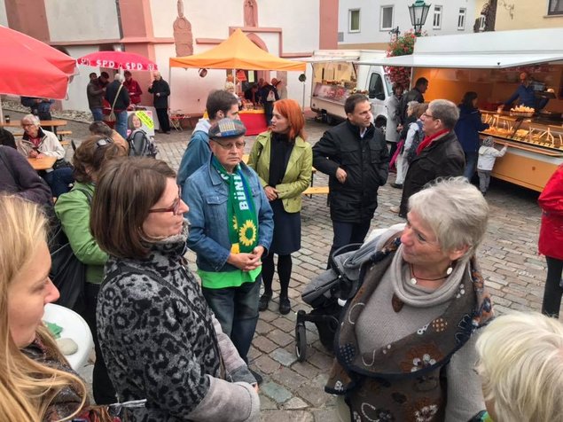 Am Freitag vor den Landtagswahlen besuchte Priska Hinz, die grüne Spitzenkandidatin und Umweltministerin unseren Stand auf dem Wochenmarkt. Viele Gespräche führte sie auf dem Markt mit Eppsteiner*innen vor dem Mundschenk, am Bio-Waffelstand und am Eine Welt Stand.