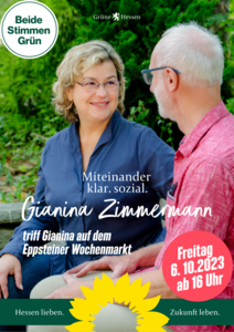 Die Eppsteiner Grünen freuen sich, dass Gianina Zimmermann, Direktkandidatin der Landtagswahl im Main-Taunus 1, sowohl in Eppstein, am EDEKA und am Bahnhof wie auch in Bremthal an den geplanten Aktionen teilnehmen wird.