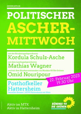 Wir bitten alle Teilnehmenden sich in der Kreisgeschäftsstelle unter: info@gruene-mtk.de anzumelden.