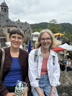 Anette Theimer, neu gewählte Vorsitzende der Eppsteiner Grünen, und Gabriele Sutor, 2. Vorsitzende begleiteten Anna Lührmann, MdB und Landesvorsitzende, über das Fest der Vereine auf Burg Eppstein.